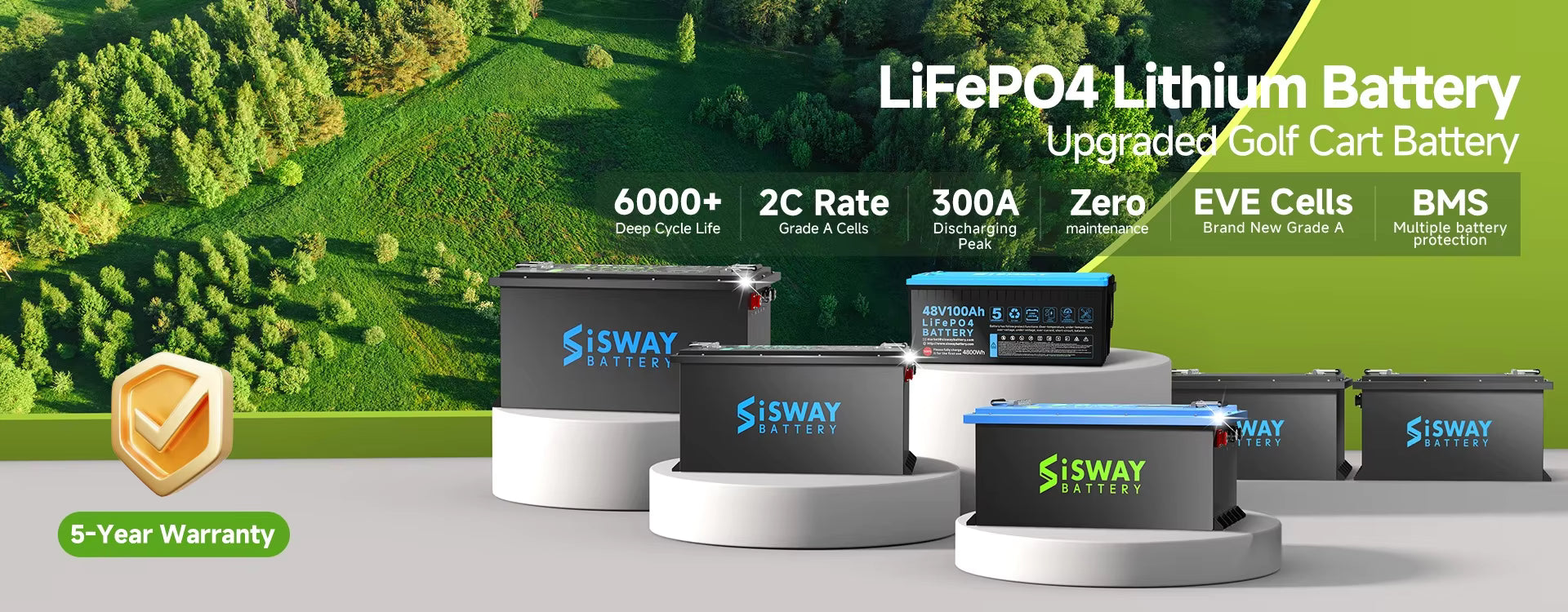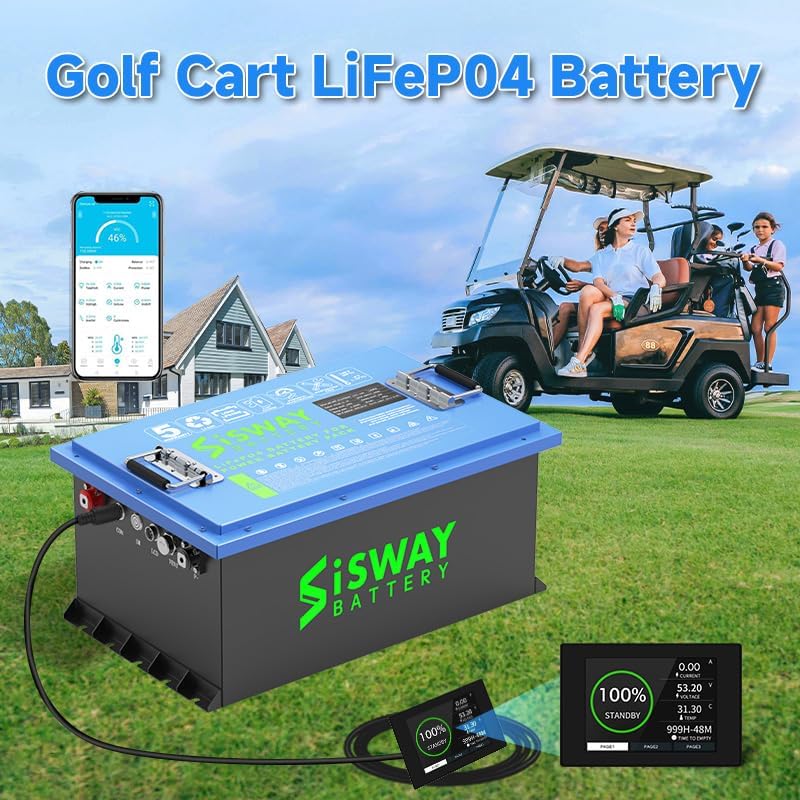 48V 100AH Golf Cart Lithium battery, 48 volt 5.12kWh LifePo4 battery with 20A charger, built-in smart 200A Bluetooth BMS,4000+ cycles, Lead Acid to Lithium-ion Battery Conversion for Golf carts, RV, Marine, ATV, Sweeping Vehicle