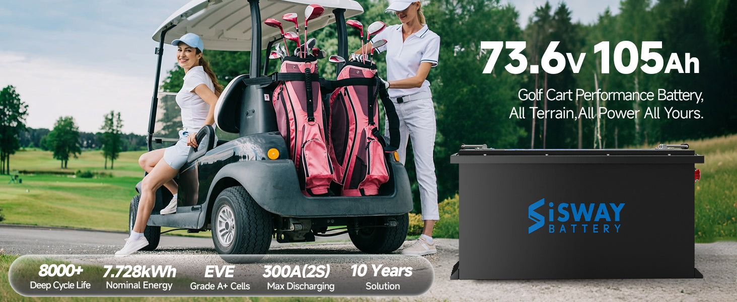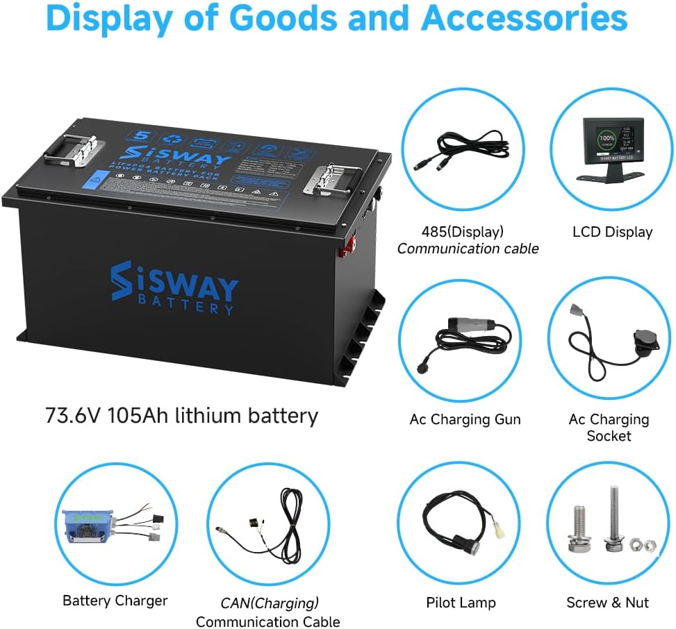 72V(73.6V) 105Ah 7728Wh Golf Cart Lithium Battery with 18A charger Built-in 200A BMS, Touch Monitor, Metal casing 14.72kW Rated Power Bluetooth LiFePO4 battery, Designed for Golf Cart, Tour LSV ,Electric Tricycle, Motorboats, Drive, Cabin Scooter
